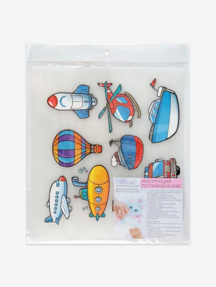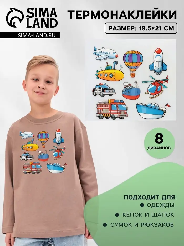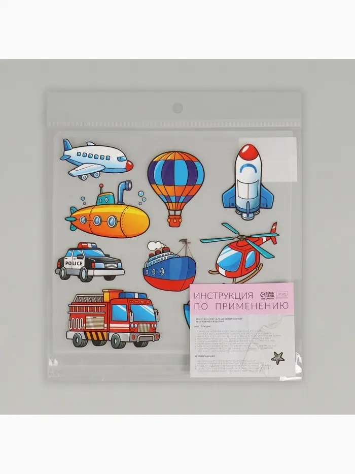 Термонаклейки с техникой порадуют маленьких любителей транспорта. Восемь ярких дизайнов размером 19.5×21 см изображают различные машины, развивая детское воображение. Наносятся на одежду и аксессуары за несколько минут с помощью утюга.