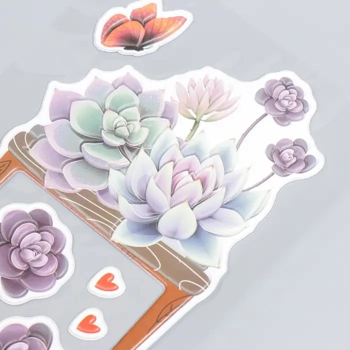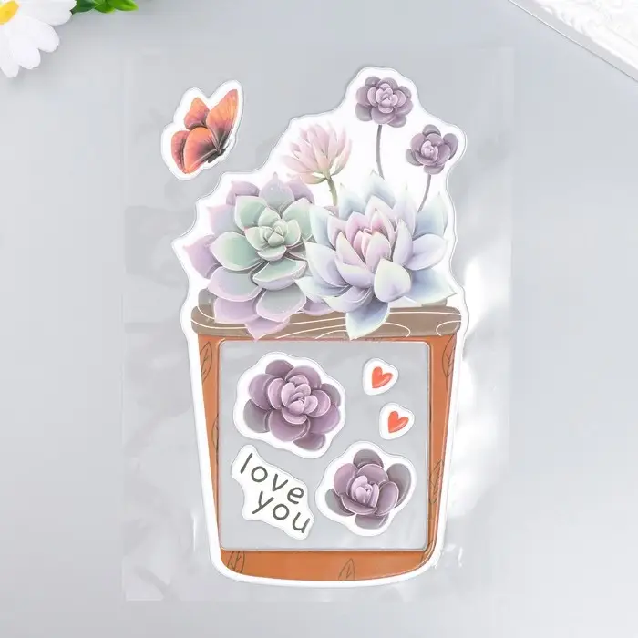 Наклейка на выключатель "Суккуленты в горшочке" окно 8,5х8,5 см, объемная 26х16,5 см