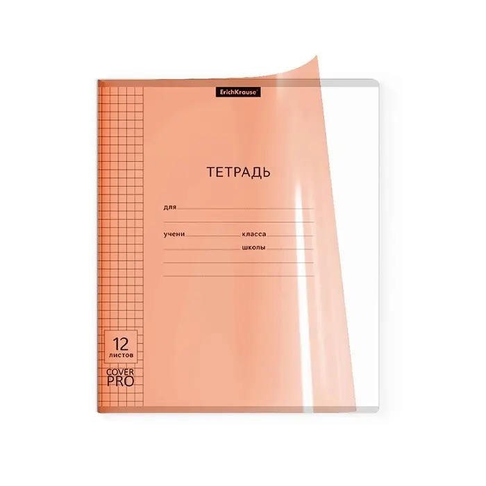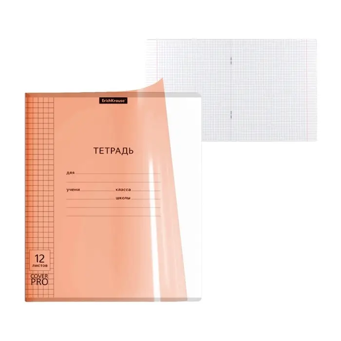 Тетрадь 12 листов в клетку ErichKrause, CoverPrо Neon, пластиковая обложка, оранжевая