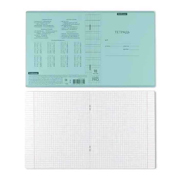 Тетрадь 18 листов, ErichKrause «CoverPrо Pastel», в клетку, пластиковая обложка, блок офсет, 100% белизна, мятная