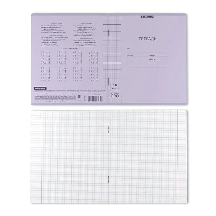 Тетрадь 18 листов в клетку ErichKrause «Классика CoverPrо Pastel», пластиковая обложка, сиреневая