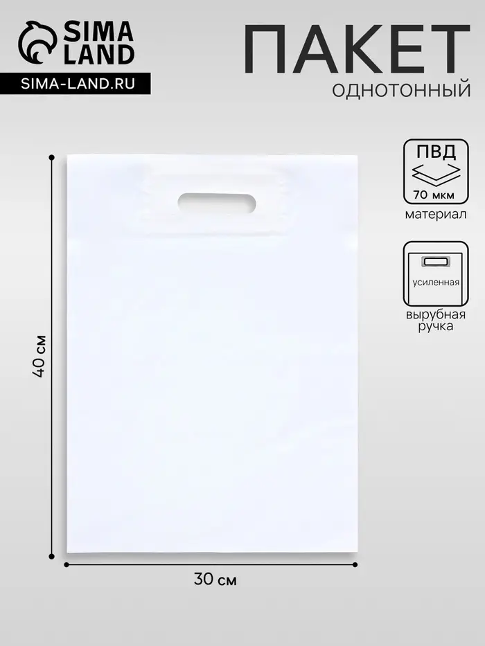 Пакет полиэтиленовый с вырубной ручкой, Белый 30×40 См, 70 мкм