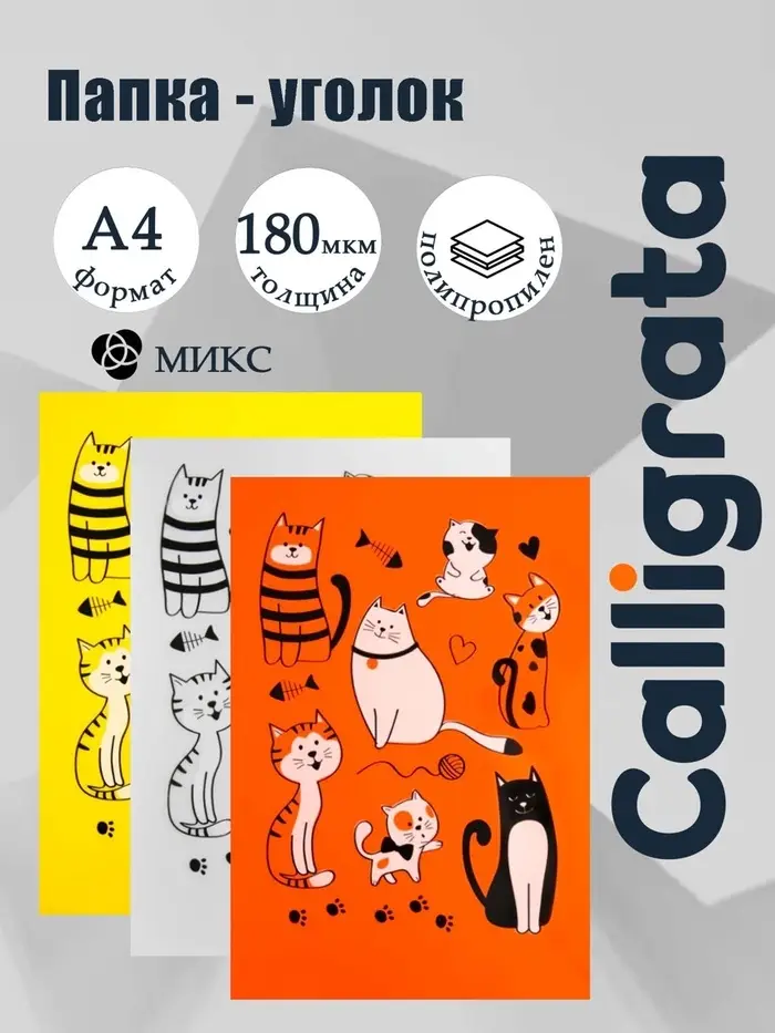 Папка-уголок А4, 180 мкм, Calligrata «Котики», полупрозрачная, с принтом, микс