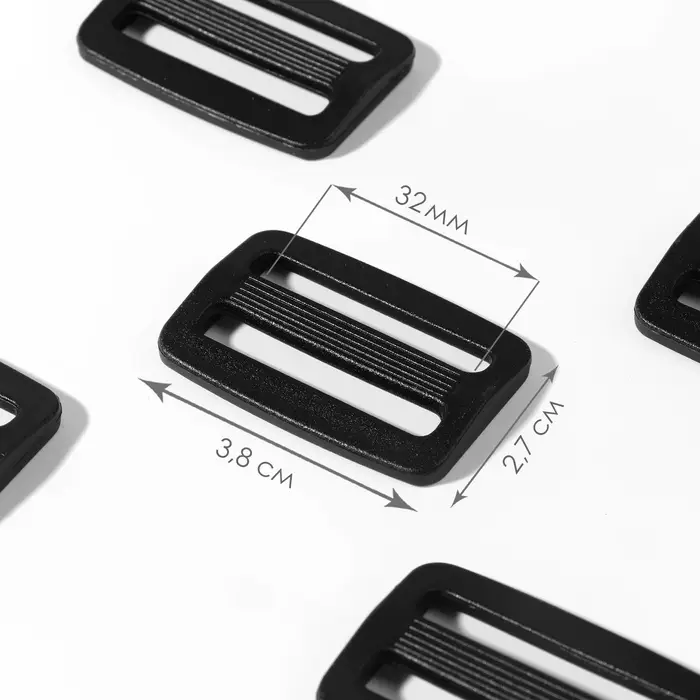 Пряжка регулирующая, двухщелевая, вн. ширина=32 мм, s=4 мм, 10 шт., чёрная