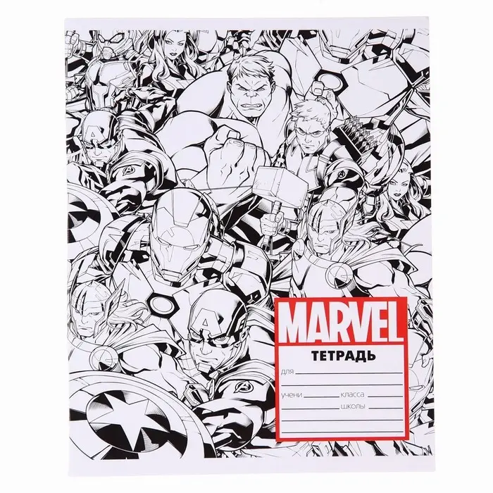 Тетрадь в клетку 24 листа, 4 вида МИКС, обложка мелованный картон, «Мстители»