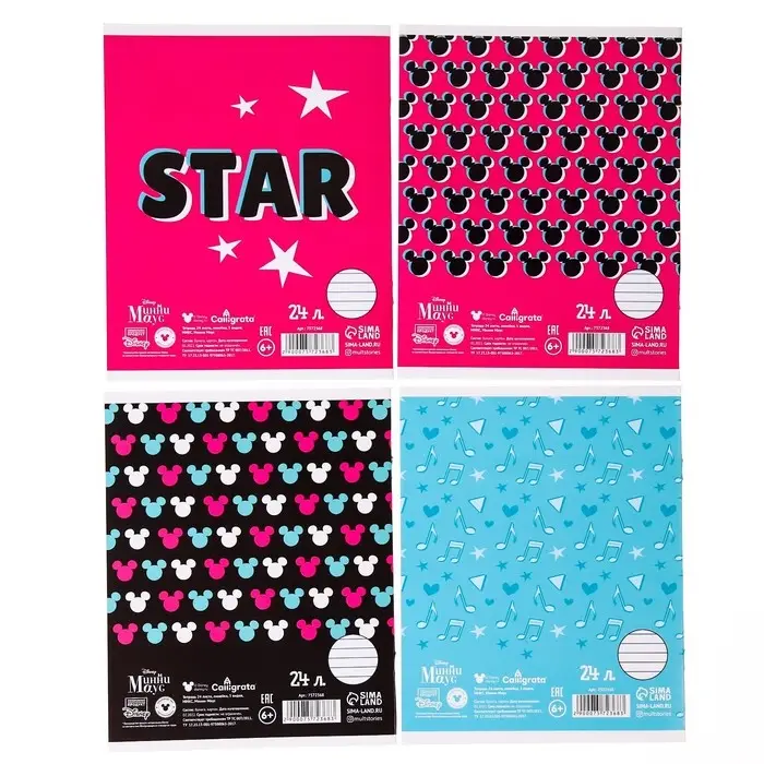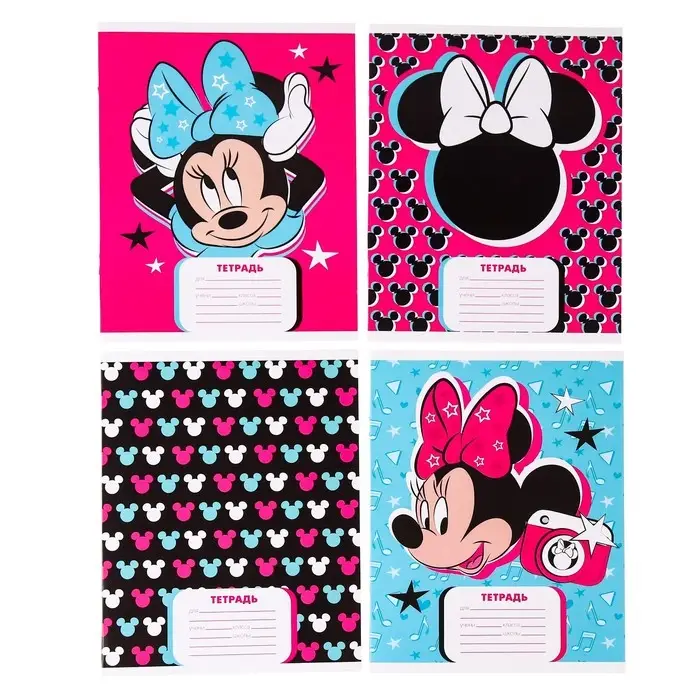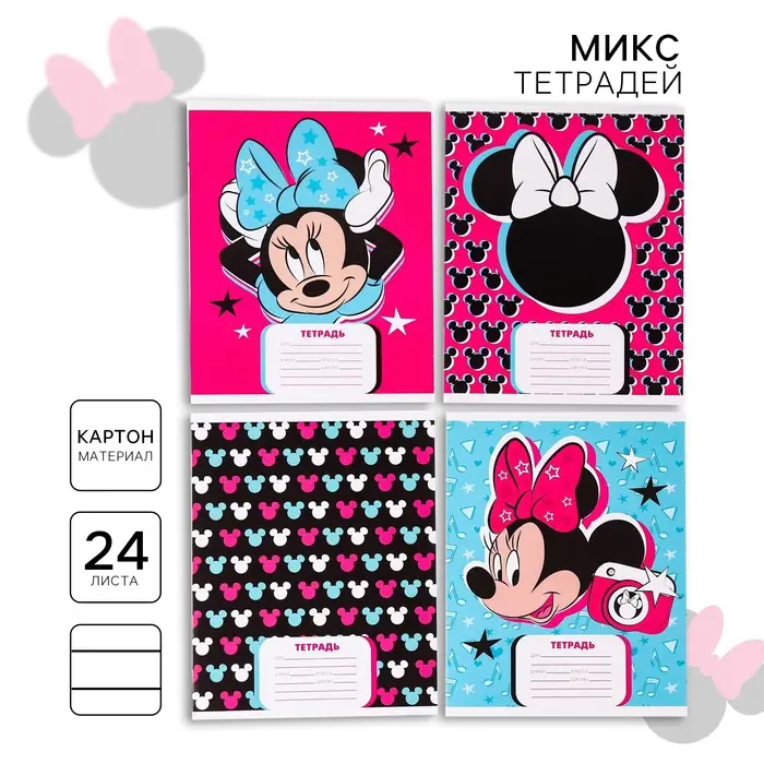Тетрадь в линейку 24 листа, 4 вида МИКС, обложка мелованный картон, «Минни Маус»