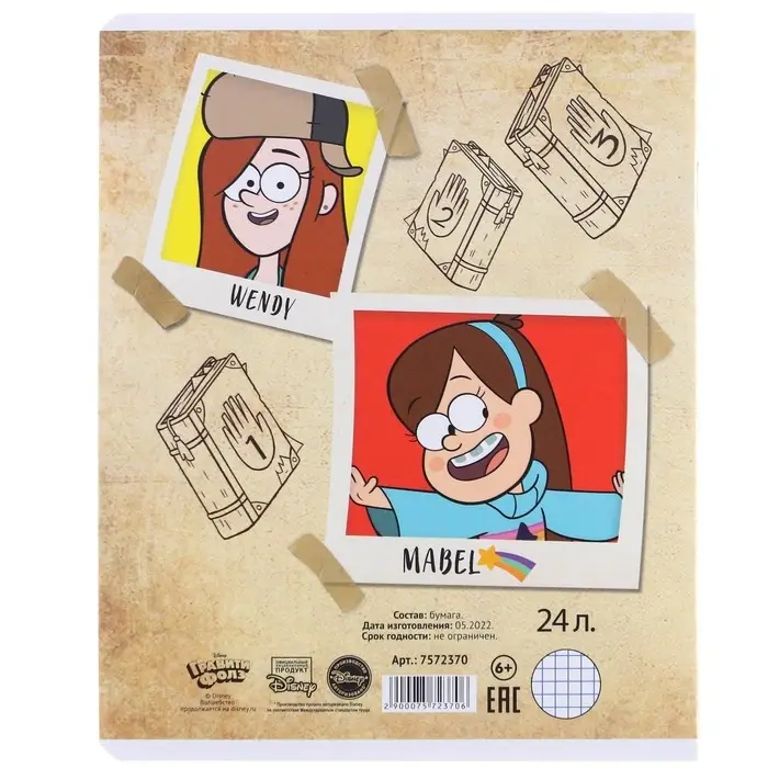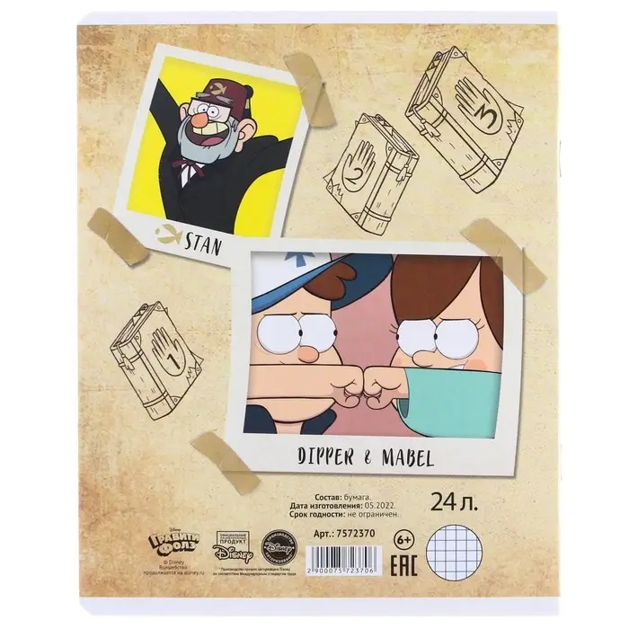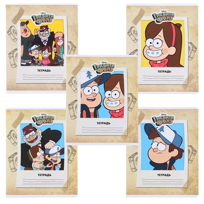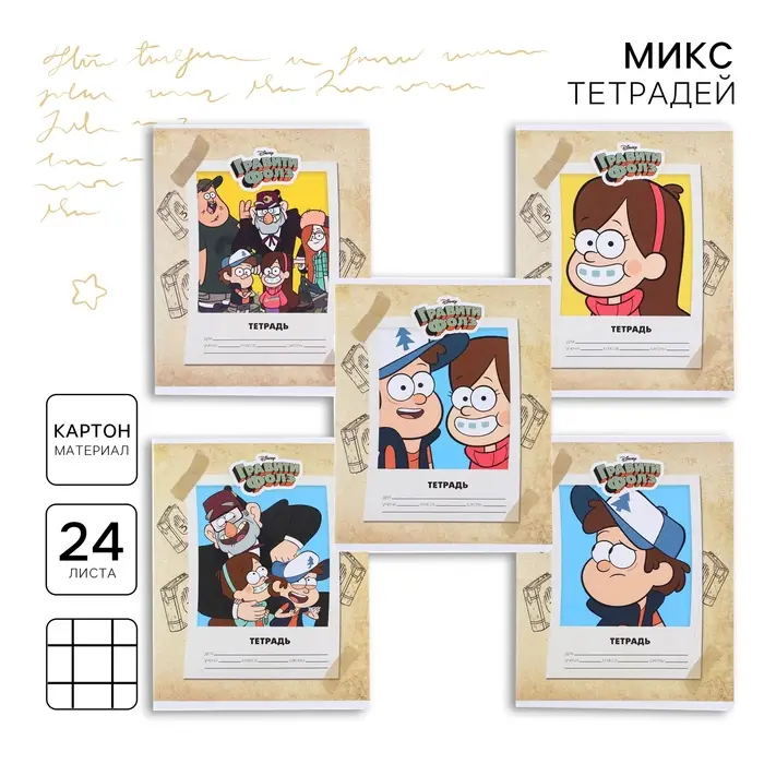 Тетрадь в клетку 24 листа, 5 видов МИКС, обложка мелованный картон, «Гравити Фолз»