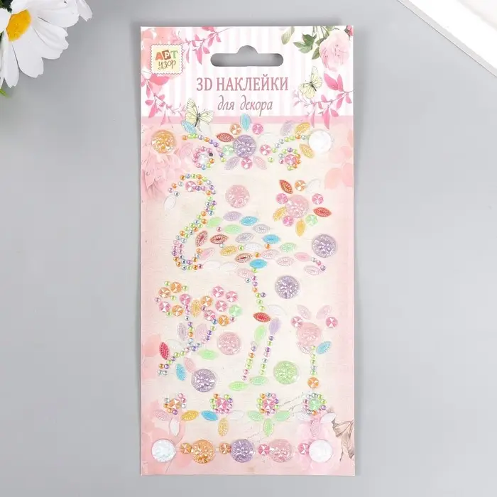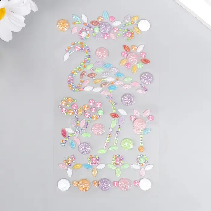 Наклейка пластик стразы "Фламинго" МИКС 19х9 см