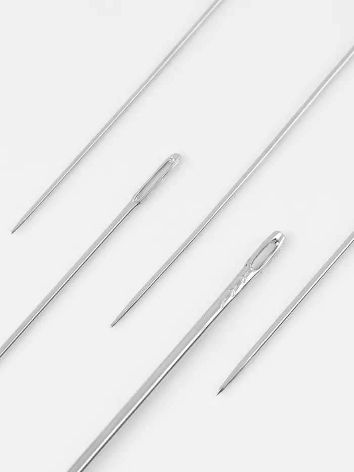 Двадцать универсальных игл для домашнего шитья и экстренного ремонта. Стальные ручные иглы подходят для работы с хлопком, льном, смесовыми тканями и трикотажем. Разные размеры в наборе охватывают большинство бытовых задач — от пришивания пуговиц до починки постельного белья.