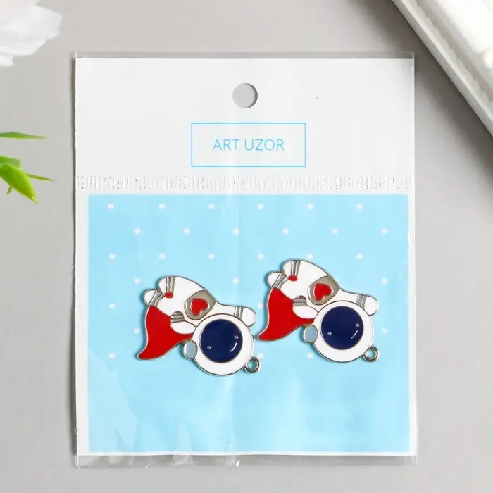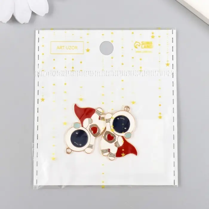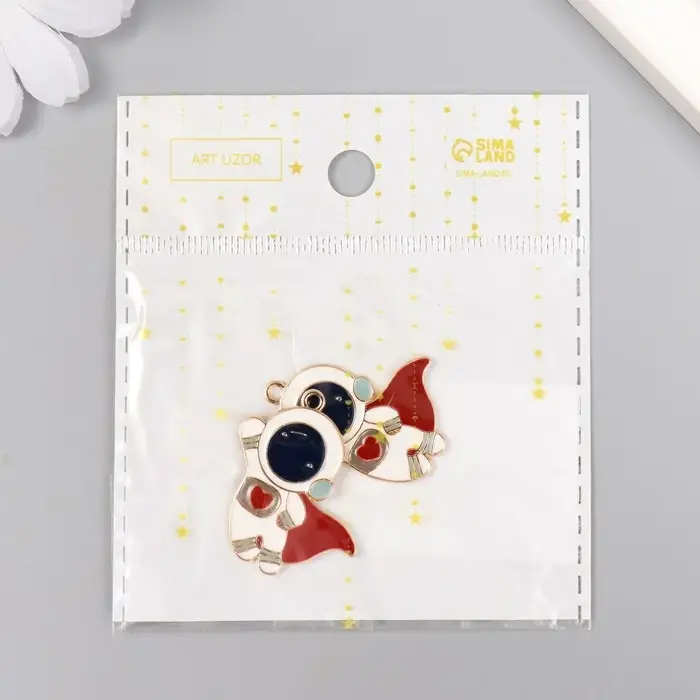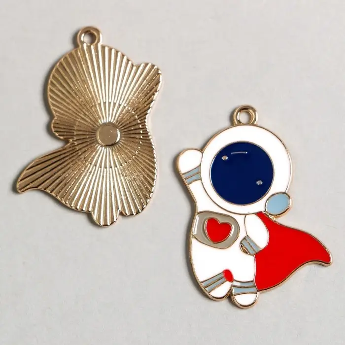 Металлический элемент, декоративная подвеска «Арт Узор. Космонавт в красном плаще», золото, 3.1×2.5 см