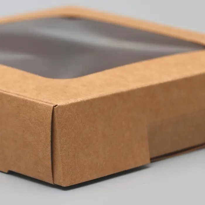 Коробка самосборная, крафт, с окном, 13×13×3 см