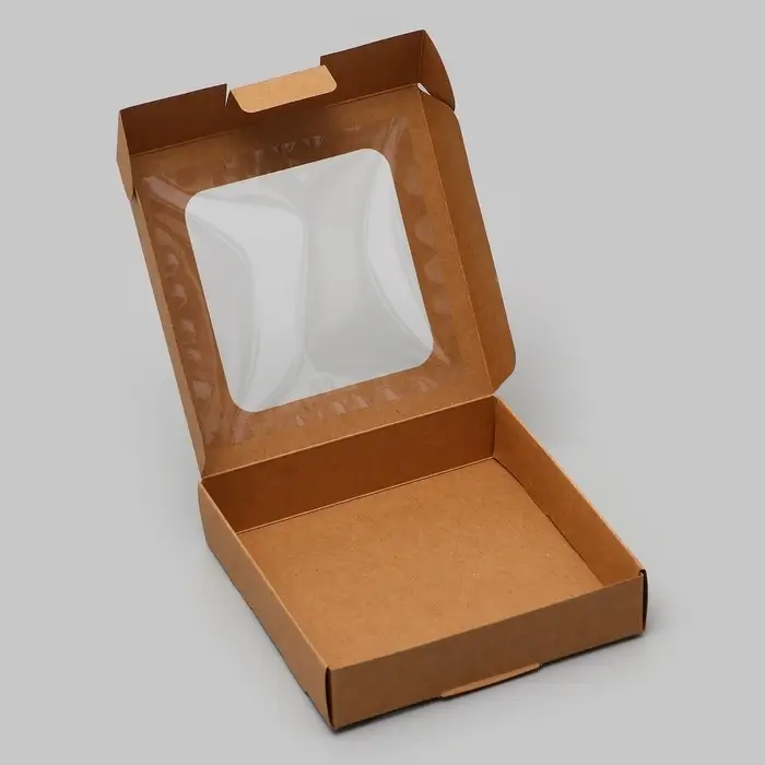 Маленькая крафт коробка с окошком 13х13 см — это самосборная упаковка квадратной формы. Она сочетает в себе эко-дизайн, практичный размер и прозрачную вставку для демонстрации содержимого.