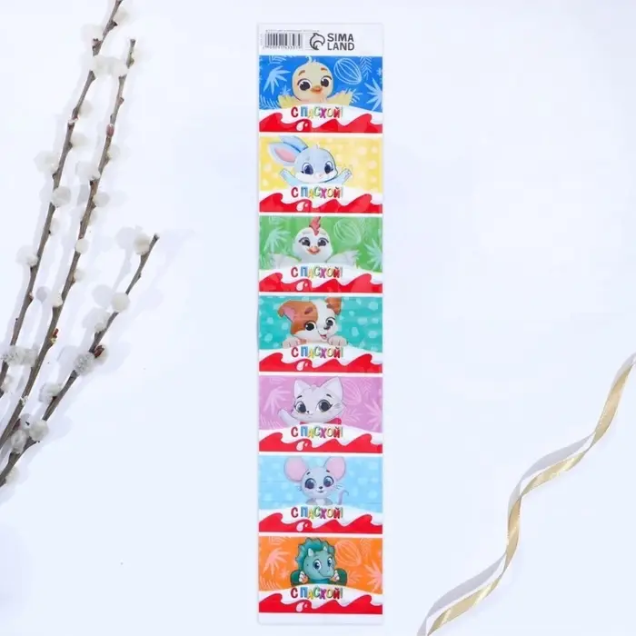 Термонаклейки на 7 яиц «Зверята» на пасху, 7.3×34.2 см