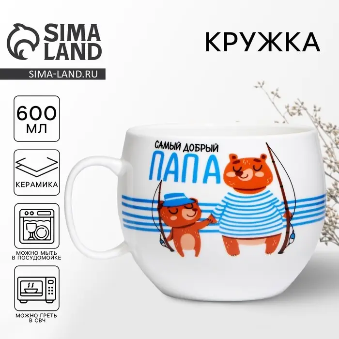 Керамическая кружка «Самый добрый папа» объёмом 600 мл станет прекрасным дополнением вашего дома и отличным подарком для ваших близких.