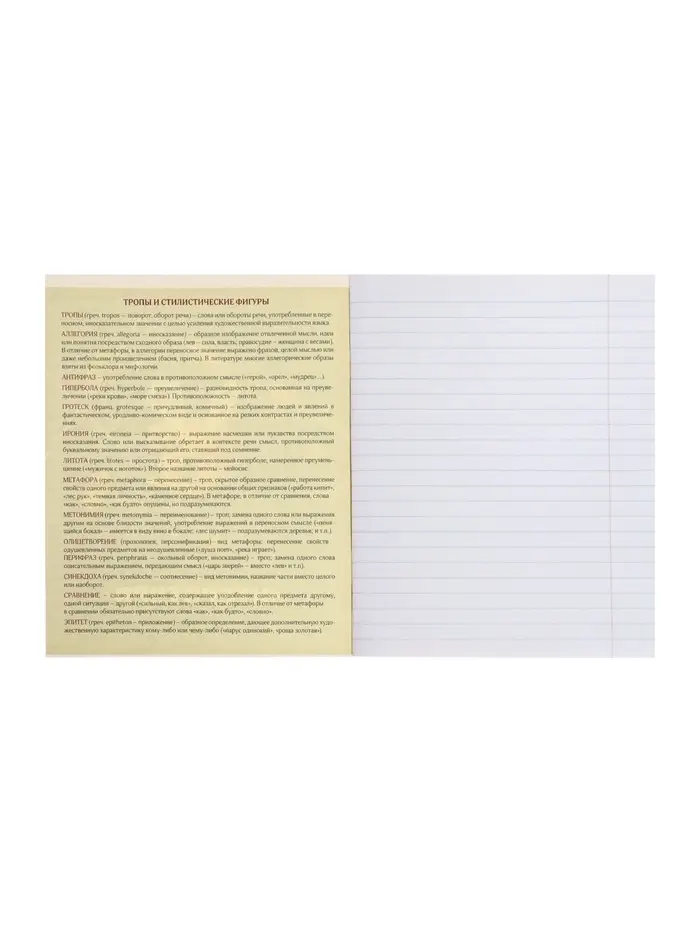 Эта тетрадь по литературе создает особое пространство для мыслей и анализа. В ней удобно вести конспекты по теории литературы, записывать цитаты и свои впечатления от прочитанного. Справочные материалы на страницах напоминают о ключевых терминах и литературных приемах, делая подготовку к урокам более структурированной.