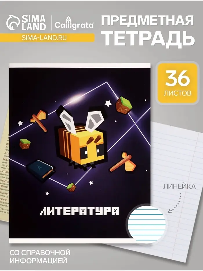 Предметная тетрадь по литературе Calligrata «Пиксели», 36 листов, в линейку, со справочным материалом, обложка из мелованного картона