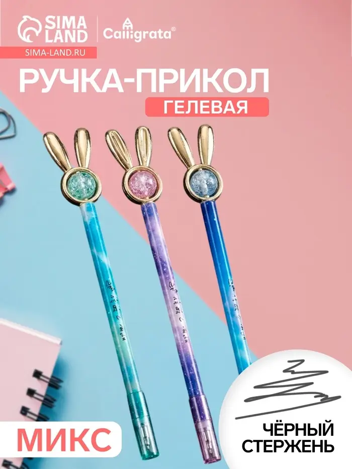 Ручка-прикол Calligrata «Блеск Ушки», чёрный стержень, гелевая, МИКС