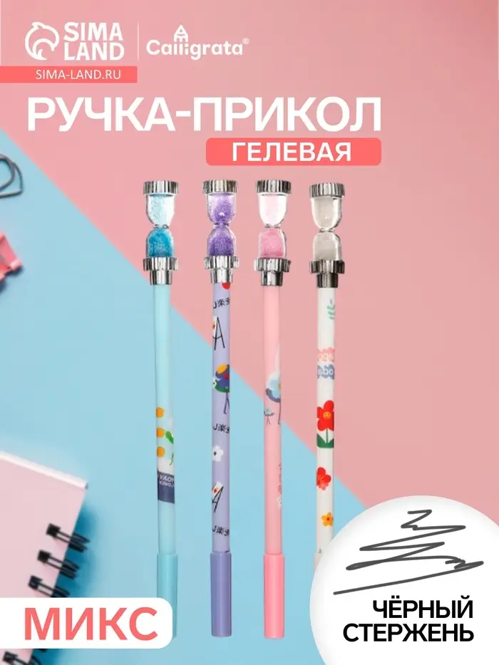 Ручка-прикол Calligrata «Песочные часы», чёрный стержень, гелевая, МИКС