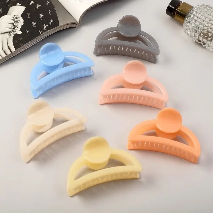 - Компактный размер 9 см: Зажим оптимален для средних по длине и густоте волос. Он надежно держит собранный хвост, пучок или часть прядей в прическе, не утяжеляя и не спадая.