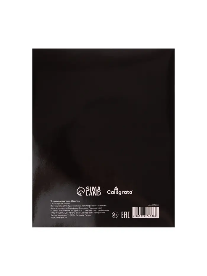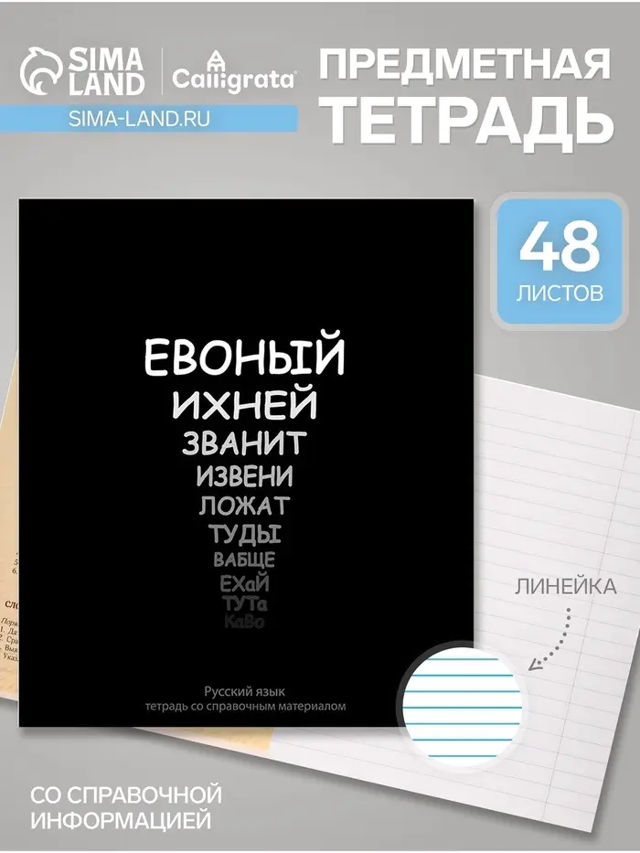 Предметная тетрадь по русскому языку Calligrata «На Чёрном», 48 листов, в линейку, со справочным материалом, обложка из мелованного картона