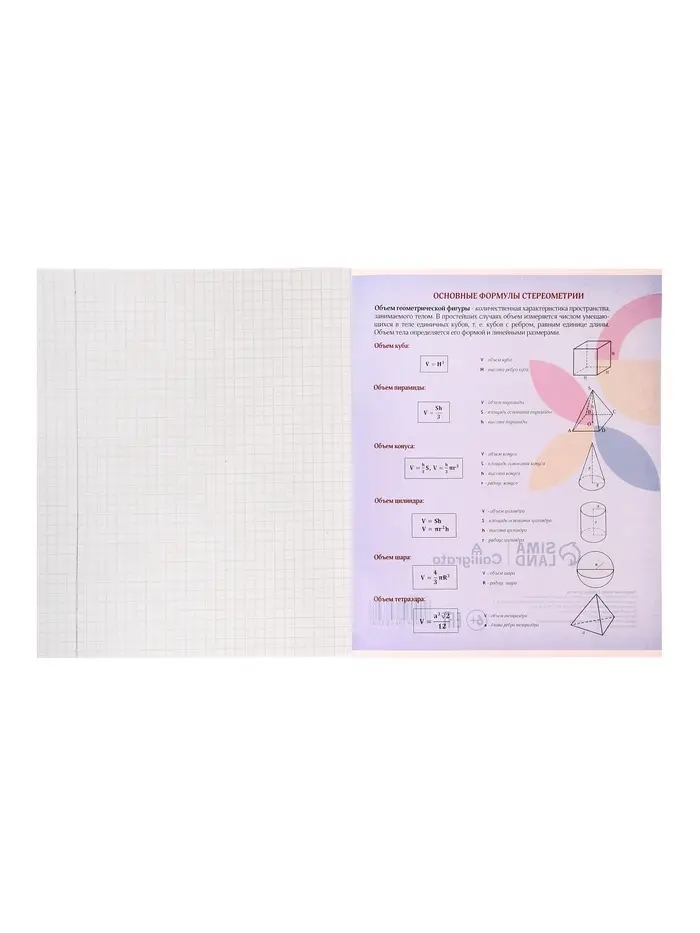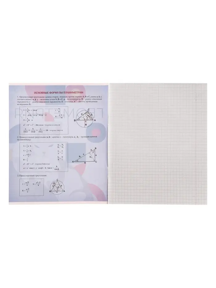 Она станет верным помощником для школьников, которые хотят систематизировать свои знания по геометрии. Справочные материалы на страницах экономят время на повторение перед контрольными, а весёлый дизайн поднимает настроение каждый день. Это практичный инструмент для успешной учёбы без скучных форматов.