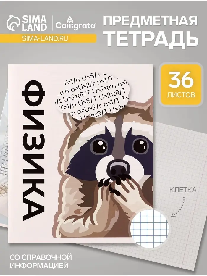 Тетрадь предметная, 36 листов в клетку, Calligrata «Животные мемы. Физика», серые листы