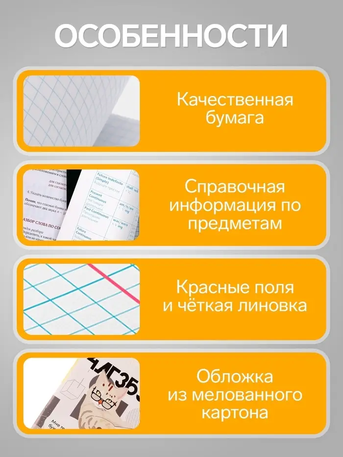 Школьники нередко переживают из-за объёма алгебры. Эта тетрадь помогает создать ощущение порядка: клетка помогает структурировать ход решения, а справочные формулы работают как напоминание. Так возникает привычка фиксировать мысль точно, без хаоса на странице. Яркий дизайн служит небольшим эмоциональным якорем — как дружеская поддержка в насыщенный учебный день.