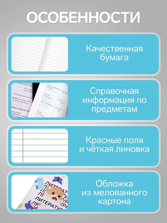 Тетрадь станет верным помощником для школьников, которые ценят не только функциональность, но и позитивные эмоции в учебе. Она помогает легко систематизировать записи по теории литературы, биографии писателей и анализу произведений, делая подготовку к урокам и экзаменам более организованной и приятной.