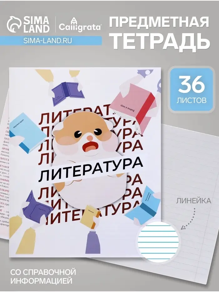 Предметная тетрадь по литературе Calligrata «Животные мемы», 36 листов, в линейку, со справочным материалом, обложка из мелованной бумаги