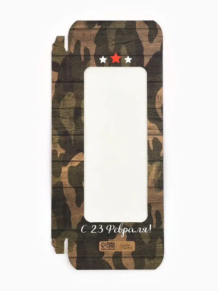 Коробка для шоколада, кондитерская упаковка, «С 23 Февраля», с окном, 17.3×8.8×1.5 см