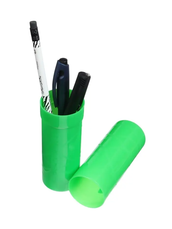 Пенал-тубус для хранения письменных принадлежностей. Изготовлен из легкого и прочного пластика, закрывается при помощи мини-защёлок. Предназначен для учащихся младших классов.Назначение: универсальный Количество отделений: 1 Материал: пластик Основной цвет: зеленый Длина: 19.5 см Ширина: 4.0 см Емкость тубуса: 22 стандартных карандаша.