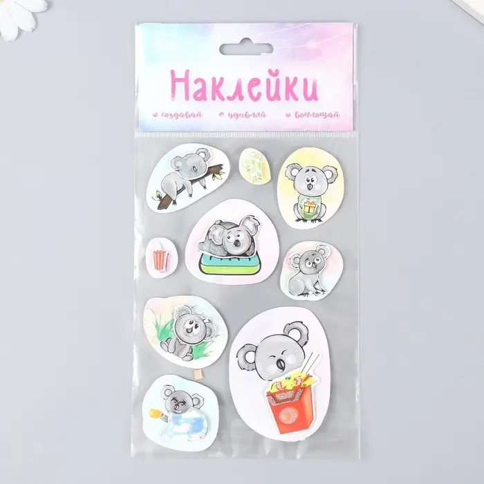 Наклейка картон 2 слоя "Ленивые коалы" 17х12 см