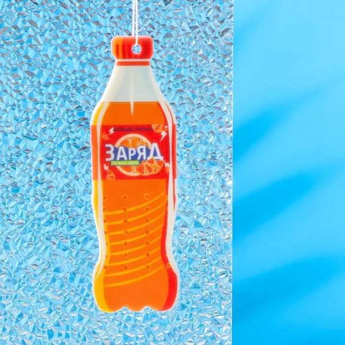 Подвесной ароматизатор для автомобиля и дома. Имеет лёгкий вес и цепляется за подвес на лобовое стекло или кладётся в любую нишу. Специальный картон пропитан парфюмерной композицией и источает приятный аромат, который охватит окружающее пространство и будет успокаивать и одновременно помогать оставаться бдительным. А яркий дизайн ароматизатора послужит хорошим украшением для салона.