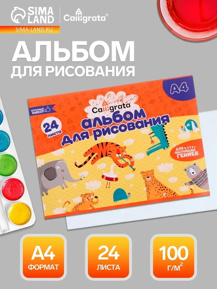Альбом для рисования Calligrata А4, 24 листа, на скрепке, плотность листов 100 г/м², обложка из мелованной бумаги