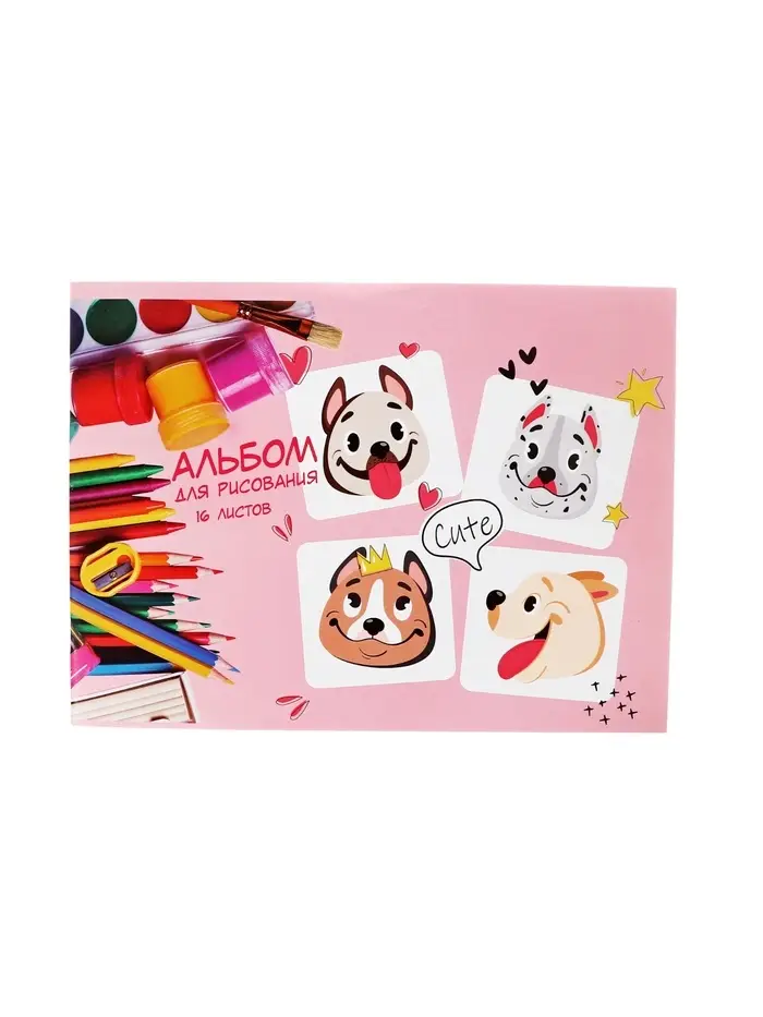 Альбом для рисования Calligrata «Милые собачки» А4, 16 листов, на скрепке, плотность листов 100 г/м², обложка из мелованной бумаги