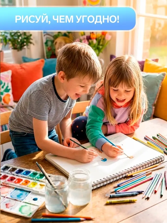 - Плотная бумага 100 г/м² выдерживает активное рисование фломастерами без проступания на обратную сторону.