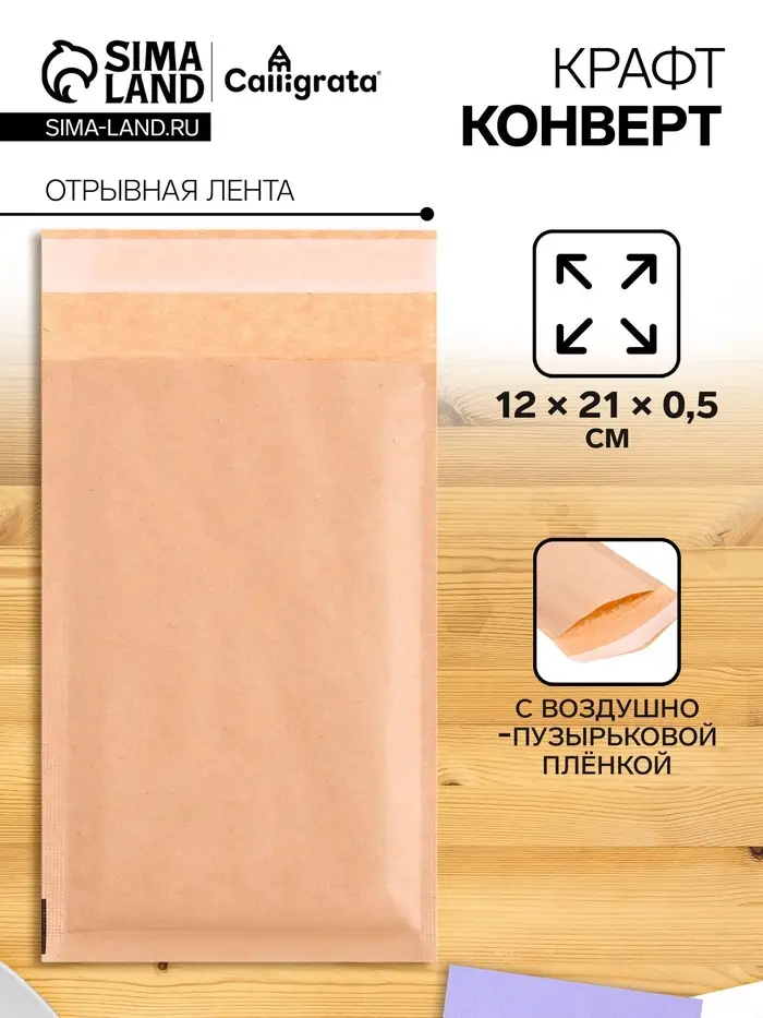 Крафтовые конверты с пузырьковой плёнкой внутри предназначены для бережной отправки небольших предметов. Модель 12×21 см подходит для пересылки фотографий, ювелирных изделий, флеш-карт и другой хрупкой корреспонденции. Сочетание плотной бумаги и амортизирующего слоя защищает содержимое от ударов при транспортировке.