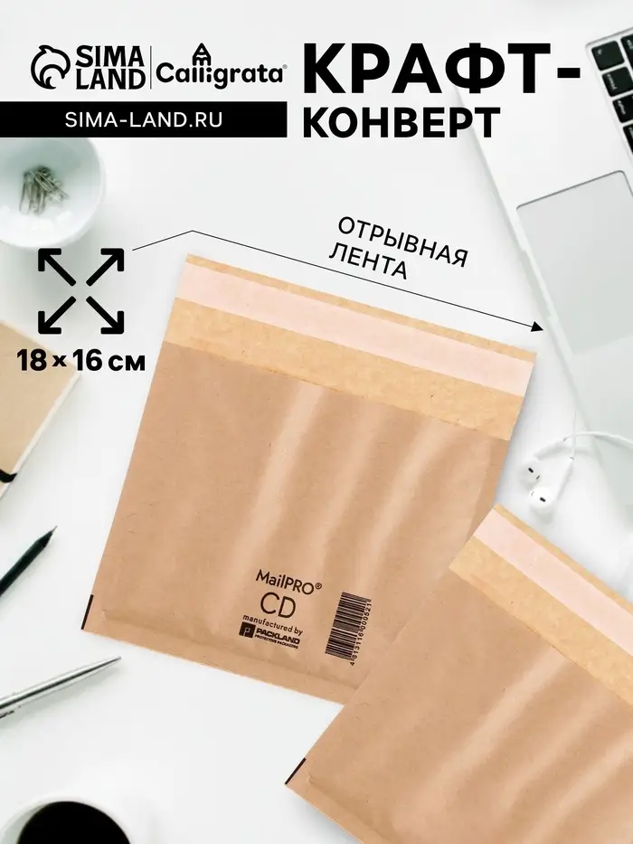 Крафт-конверт с воздушно-пузырьковой плёнкой Calligrata, 18×16 см, бежевый