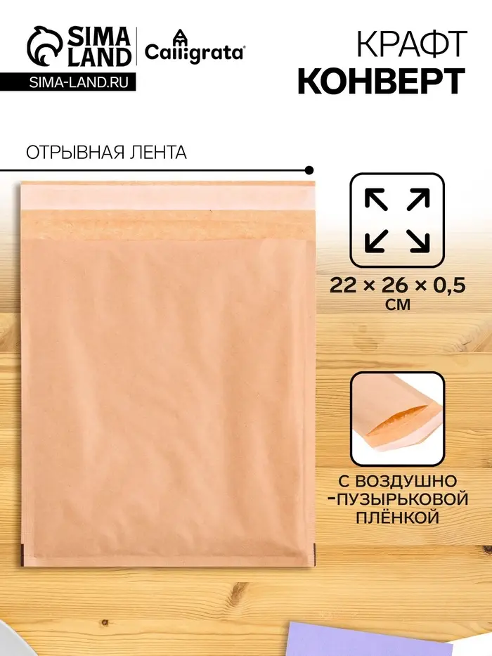 Крафт-конверт с воздушно-пузырьковой плёнкой Calligrata, 22×26 см, бежевый