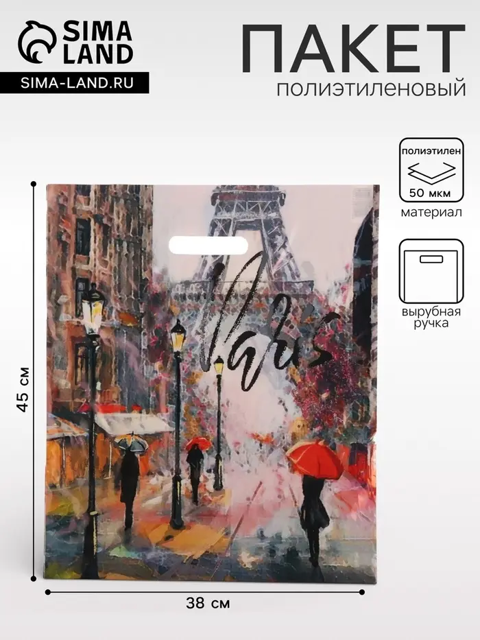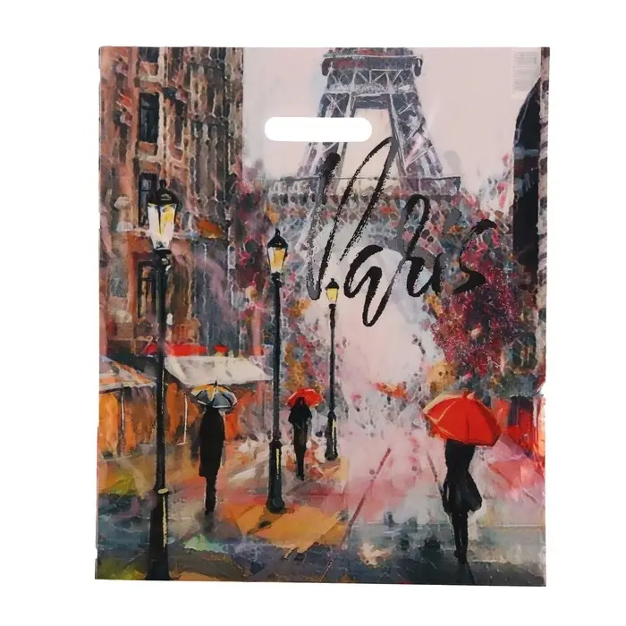 - Универсальность применения: Пакет используют для упаковки презентов, покупок или как стильный аксессуар. Дизайн с парижской тематикой уместен в любой ситуации — от прогулки до торжества.