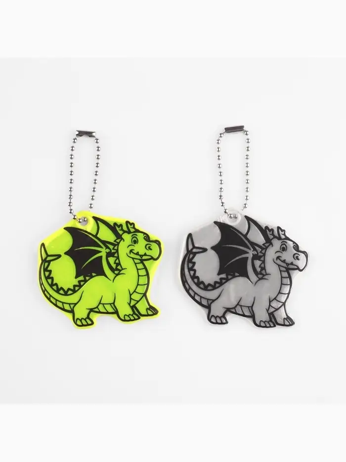 Двусторонний светоотражающий брелок в виде дракона сделает вас заметнее в темноте. Компактный и практичный, он легко крепится к ключам, рюкзаку или сумке. Яркие оттенки в ассортименте добавляют стиля, а прочный материал выдерживает активное использование.
