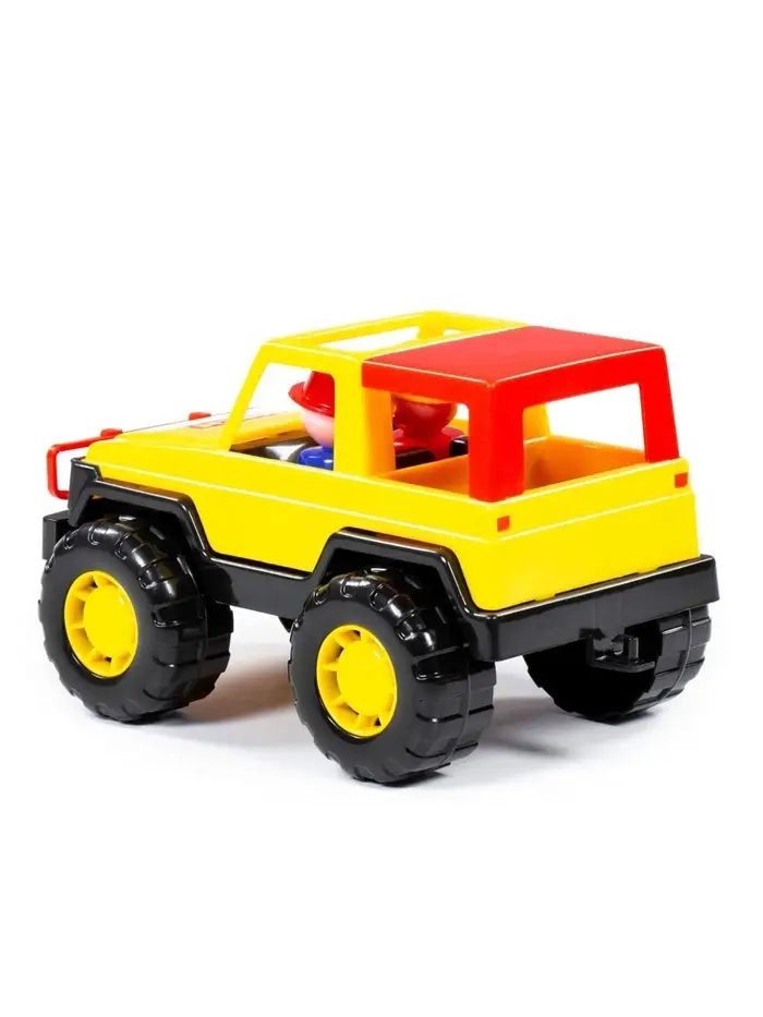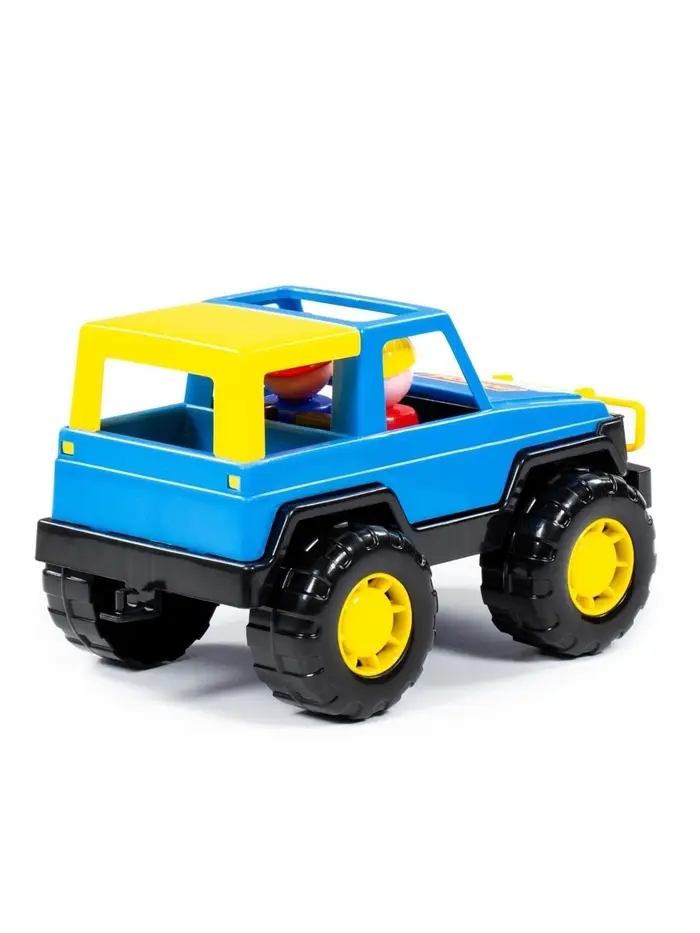 - Прочный и безопасный: внедорожник выполнен из качественного пластика, который выдерживает активные игры. Все детали крупные, без острых углов, что делает игру комфортной и безопасной для детей.
