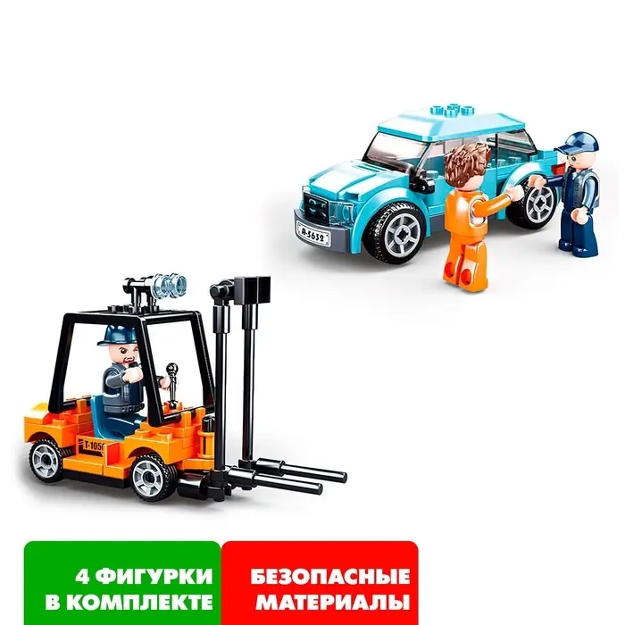 - Детали игрушки выполнены из безопасного пластика и легко собираются, малыш без труда сможет возвести целый город машин.