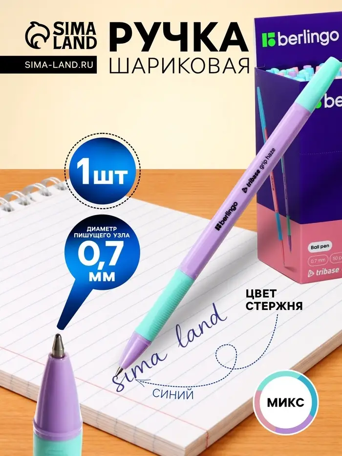Ручка шариковая Berlingo. Tribase grip haze, синий стержень, узел 0.7 мм, резиновый упор, МИКС