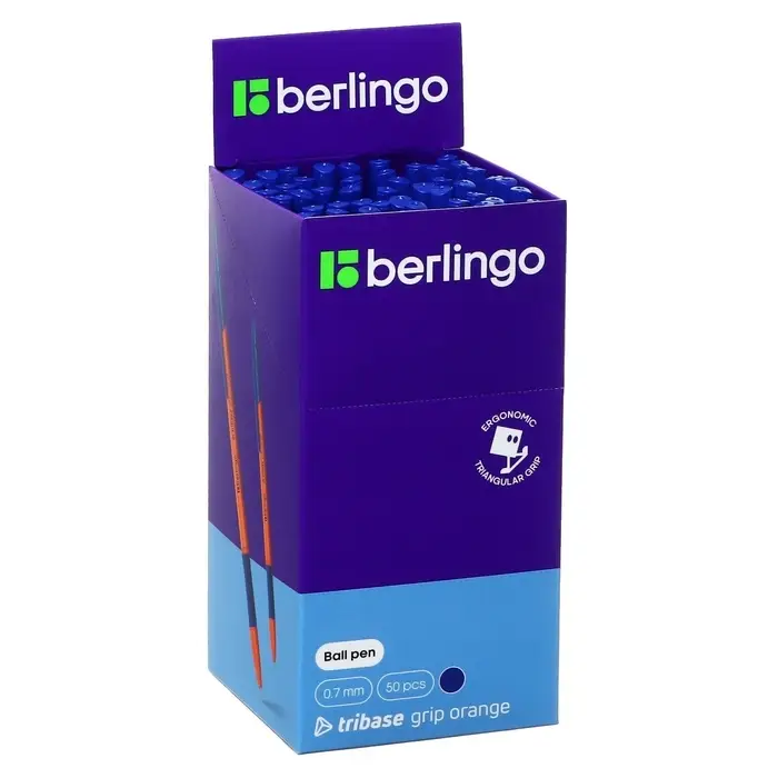 Ручка шариковая Berlingo. Tribase grip orange, синий стержень, узел 0.7 мм, резиновый упор