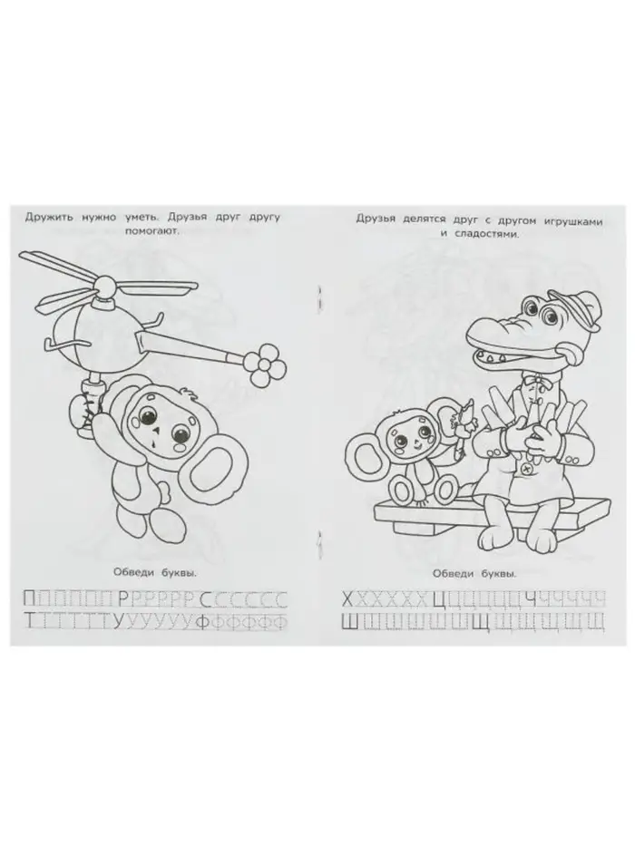 Раскраска с азбукой и прописями «Союзмультфильм. Лучшие друзья» — это 8 страниц, наполненных любимыми персонажами мультфильмов, картинками для раскрашивания и заданиями для обучения письму. Компактный размер делает её идеальной для использования дома или в дороге.