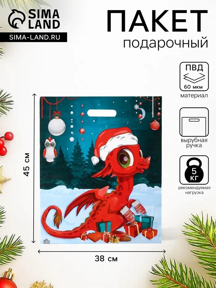 Пакет подарочный новогодний «Красивый Дракоша», полиэтиленовый с вырубной ручкой, 45×38 см, 60 мкм