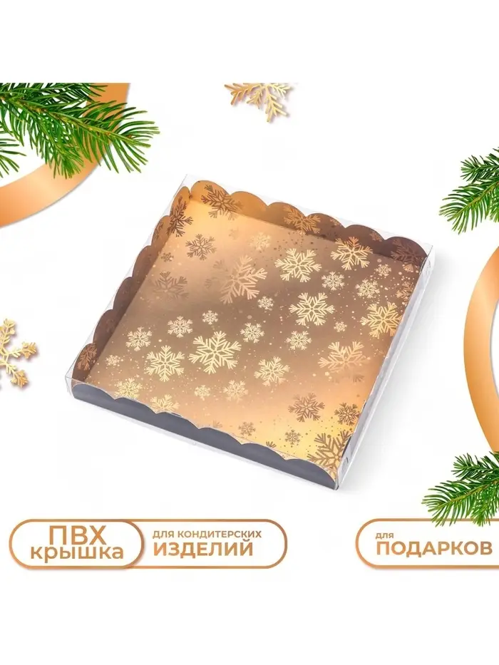 Коробка для печенья с прозрачной крышкой, можно видеть содержимое коробки. Прекрасно подойдет для десертов, можно использовать для праздничного декора.