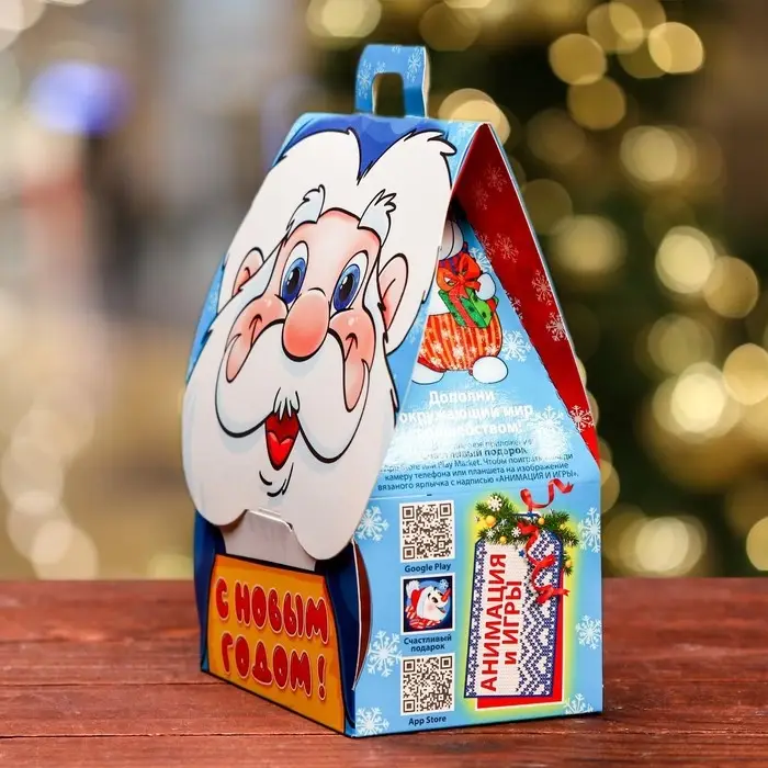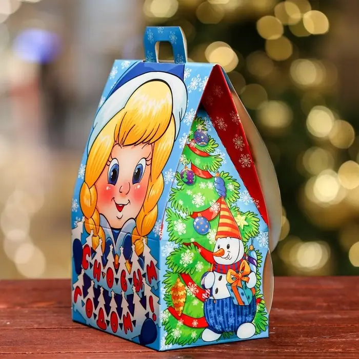 Коробка выполнена из качественных материалов, которые обеспечивают сохранность содержимого. Она имеет яркий и красочный дизайн, который отражает атмосферу Нового года.