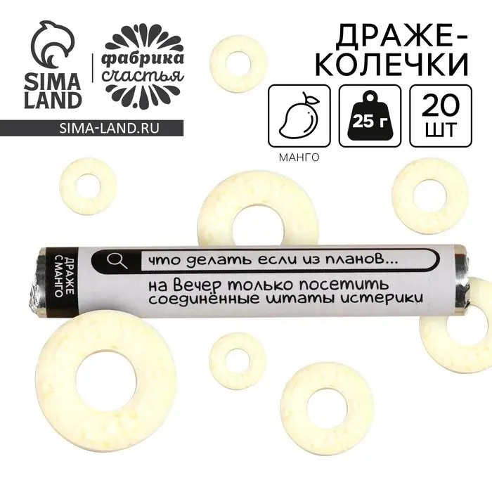 Конфеты драже колечки «Соединённые Штаты Истерики» в тубусе, вкус: манго, 25 г.